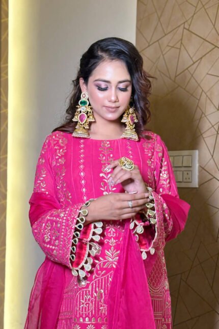 Rani Pink Summer Silk Fabric Short Anarkali With Pants & Organza Dupatta ₹14,999.00 Original price was: ₹14,999.00.₹12,999.00Current price is: ₹12,999.00.